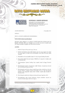 AGENDA MESYUARAT AGUNG TAHUNAN Koperasi UNIKEB Berhad Ke-44 NOTIS MESYUARAT AGUNG 15