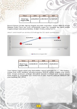 Jadual 5: Jumlah Modal Yuran dari tahun 2019 sehingga Mac 2021 adalah seper� di bawah :