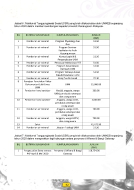 Jadual 7 : Maklumat Tanggungjawab Sosial (CSR) yang telah dilaksanakan oleh UNIKEB sepanjang
